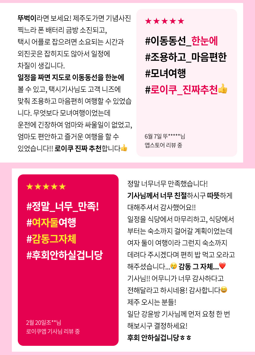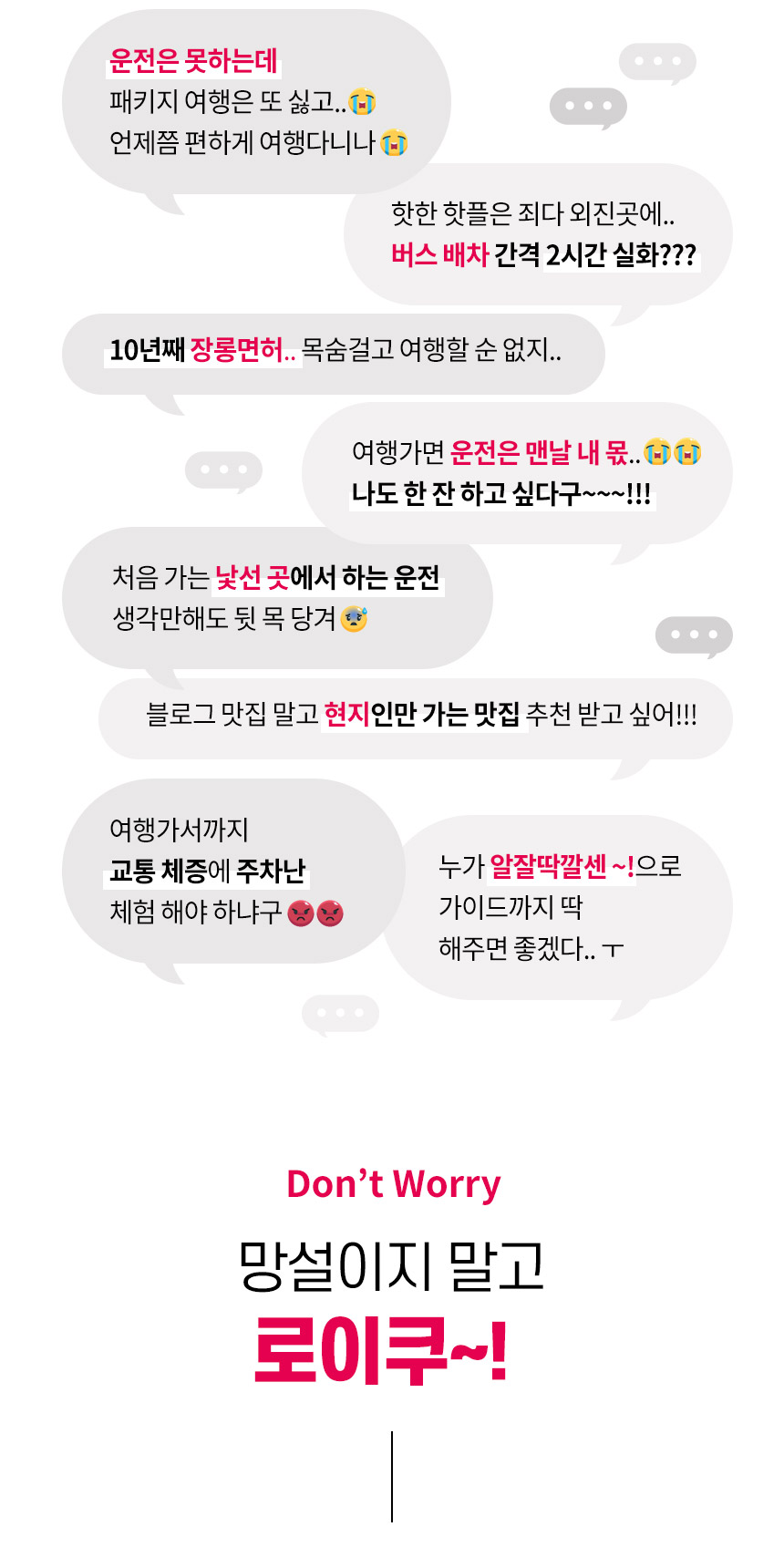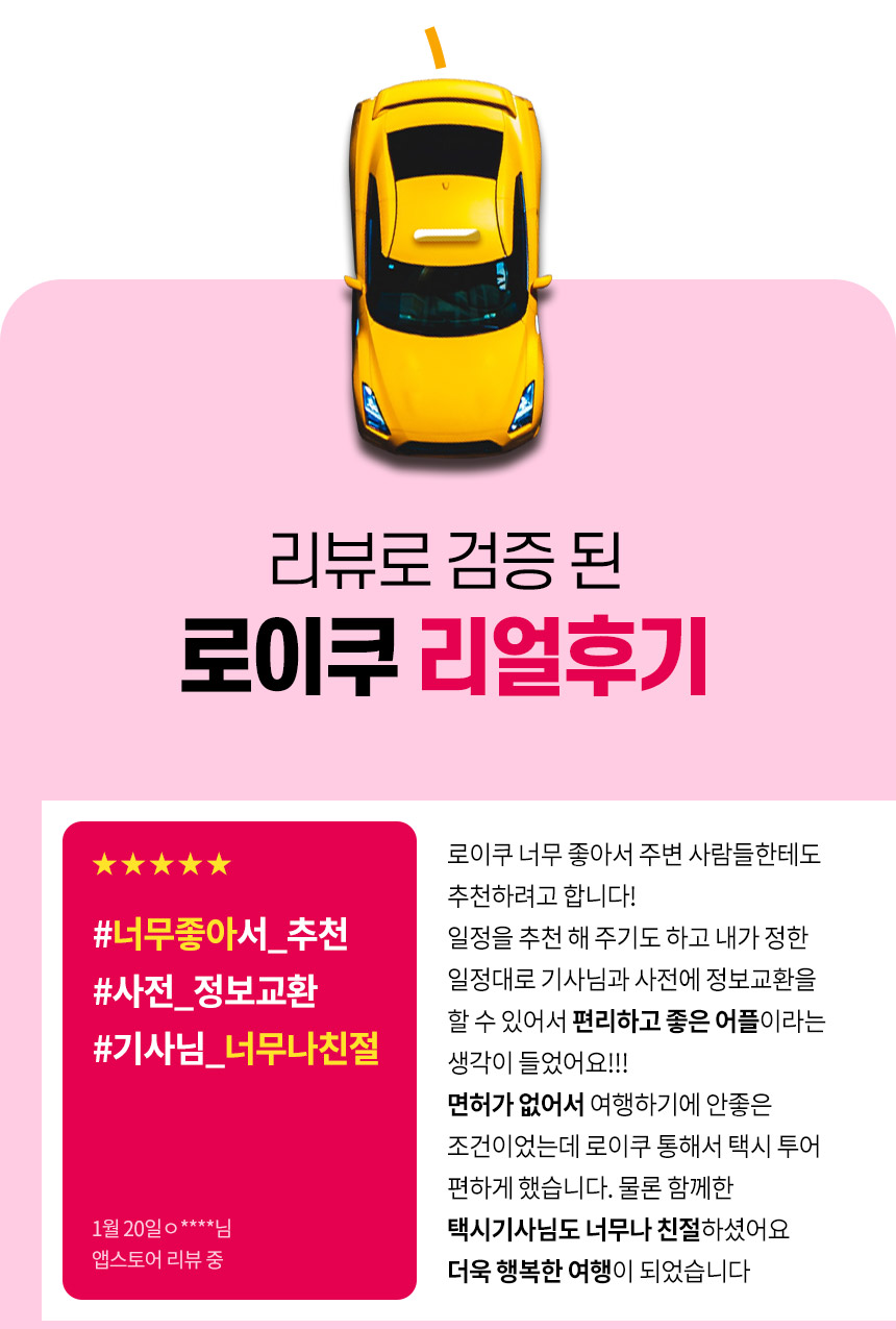 แอปพลิเคชันมือถือ LOYQU มีคุณสมบัติมากขึ้น คุณสามารถวางแผนการเดินทางได้อย่างรวดเร็วผ่านเส้นทางที่แนะนำตามเมือง และเลือกคนขับที่คุณชื่นชอบจากรีวิว เลือกเมือง สถานที่ท่องเที่ยว และคนขับที่คุณต้องการผ่านแอปพลิเคชัน และเพลิดเพลินกับการเดินทางอย่างอิสระ